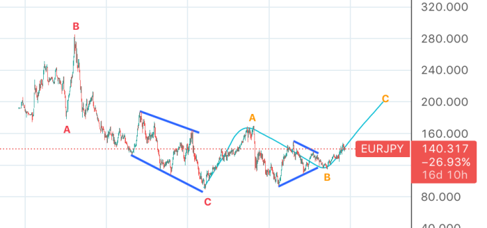 エリオット波動分析だよ。普段ドル円の分析をしているからチェココルナ円にも応用してみたよ!